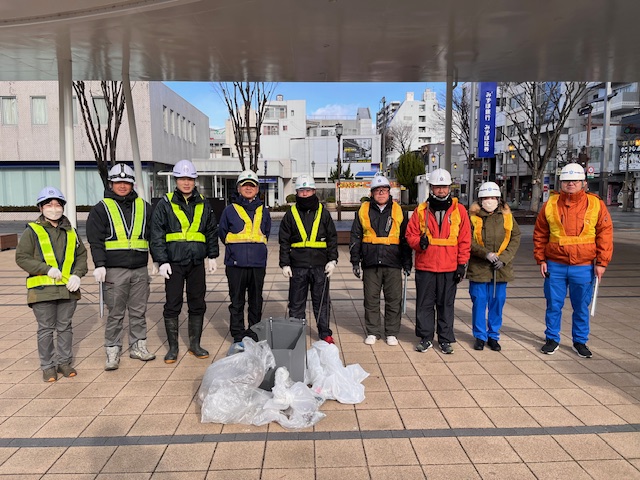 さらに12月12日には、(株)福健コンサルタント福島事業所・庄建技術(株)県北営業所の皆さんと共に、福島市パセオ通りと国道13号線沿いの歩道にて合同清掃を行いました。