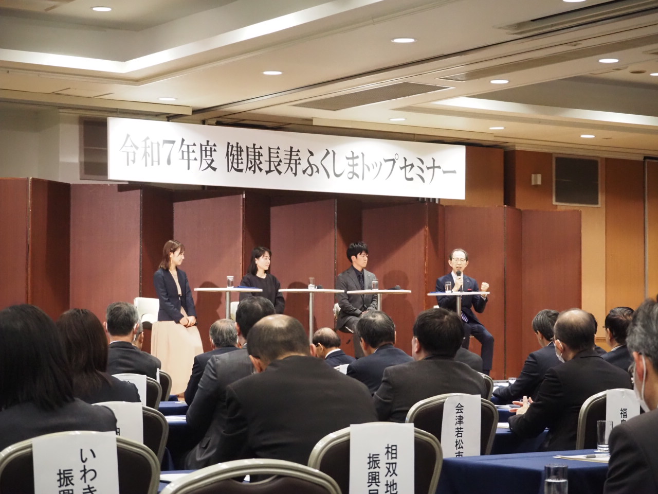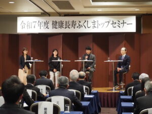 「健康長寿ふくしまトップセミナー」に登壇いたしました 2026/01/26 この度、福島県健康づくり推進課からお声がけいただき、1月23日(金)に開催された「健康長寿ふくしまトップセミナー」に、女性が働きやすい職場づくりを推進している企業の代表として、弊社代表取締役の平井が登壇いたしました。 第一部では、経済産業省ヘルスケア産業課の河裾課長補佐の基調講演、 第二部では、内堀知事・河裾課長補佐・平井の3名でパネルディスカッションを行い、女性が健康に活躍できる職場、地域づくりに向け意見を交わしました。